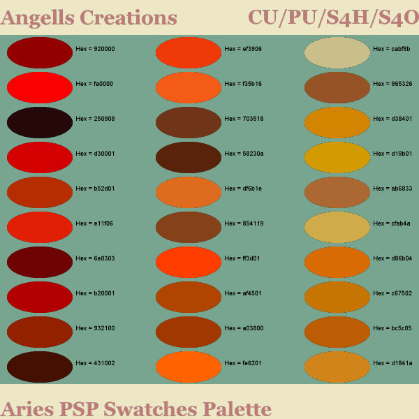 Aries Star Sign PSP Colour Swatches